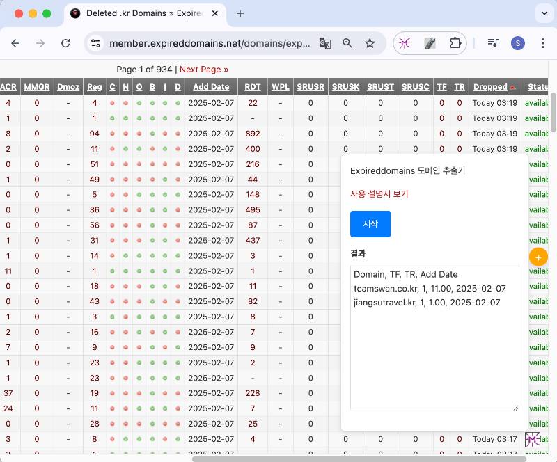 Expireddomains 도메인 추출기는 expireddomains.net 사이트의 BL, DP, TF, TR, 만료된 도메인을 추출해 주는 브라우저 확장입니다.