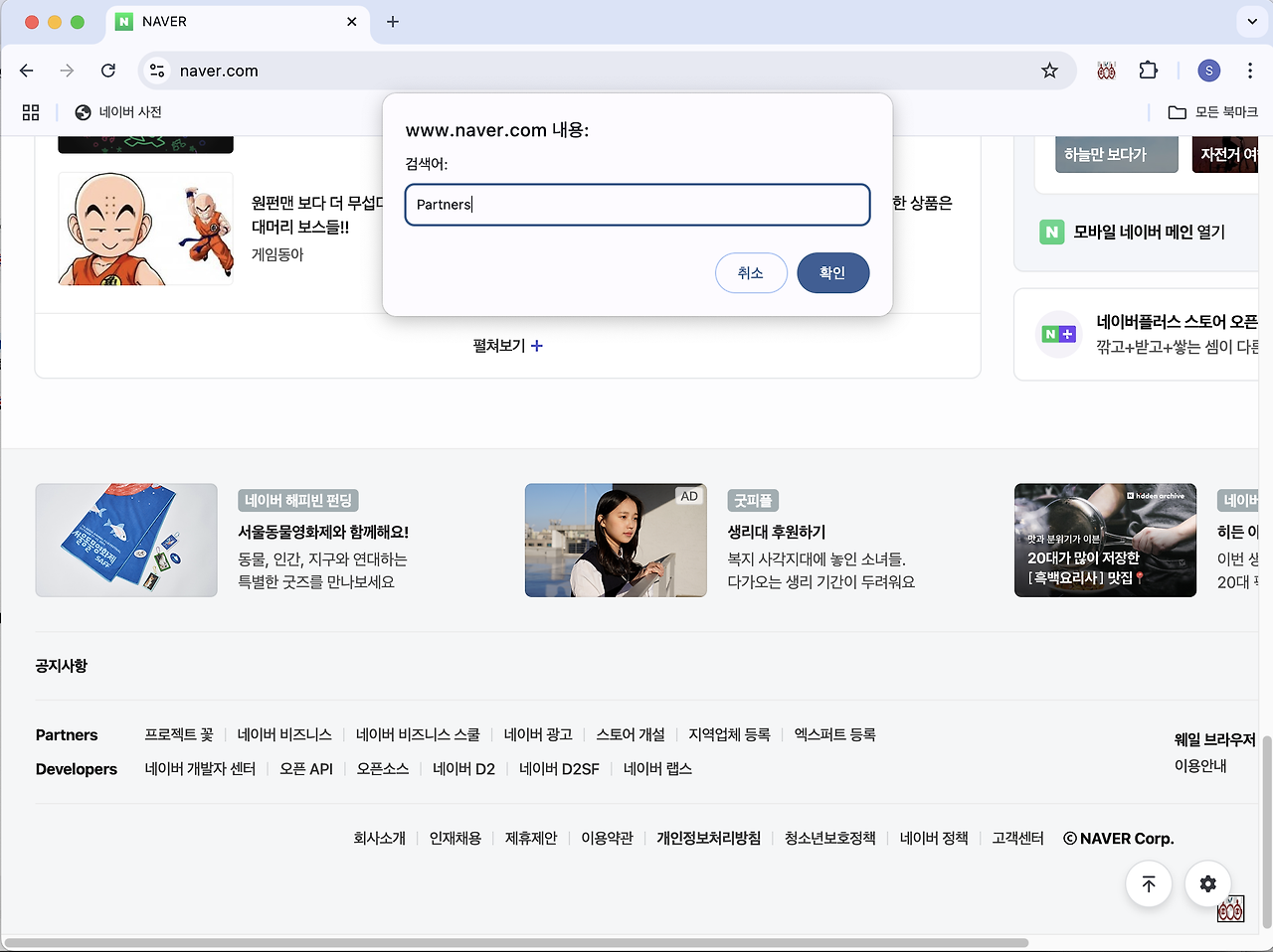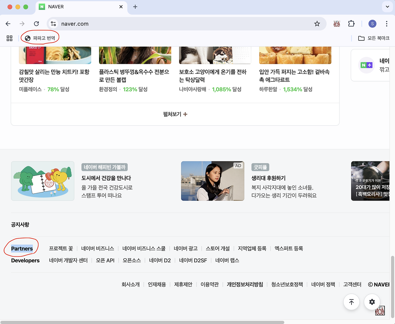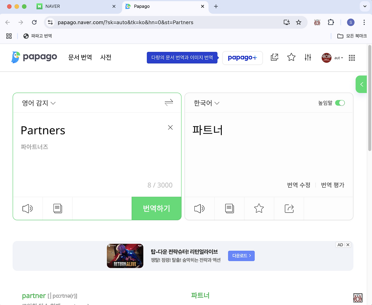 선택한 텍스트에 대한 파파고 번역 결과 보여주기