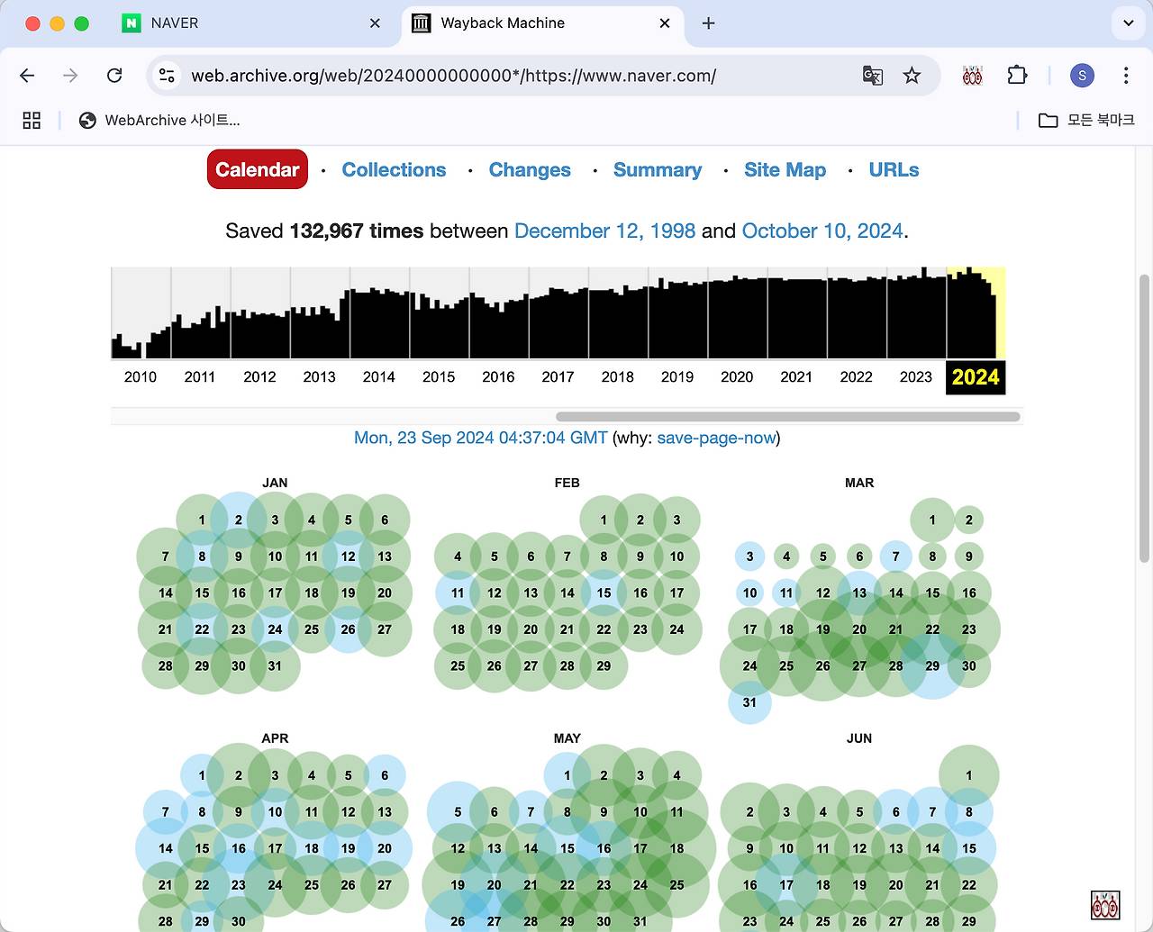 현재 접속한 사이트에 대한 웹어치브 히스토리 정보 보여주기