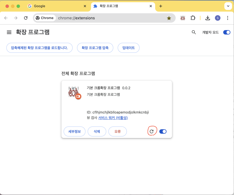 브라우저 확장에서 에러시 리로드해 다시 시작할 수 있는 방법에 대해 설명 합니다.