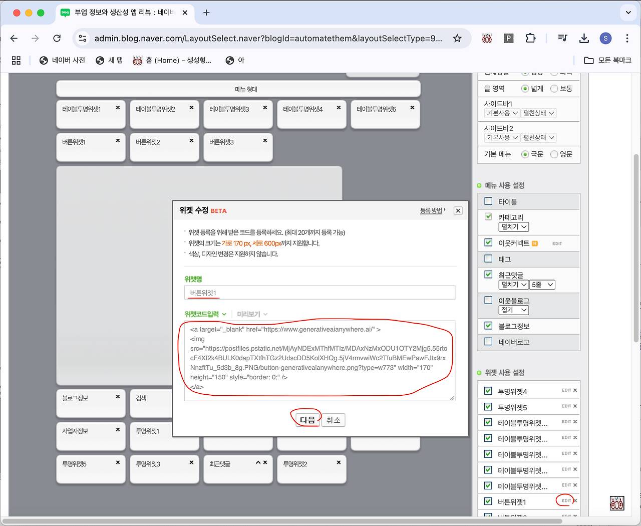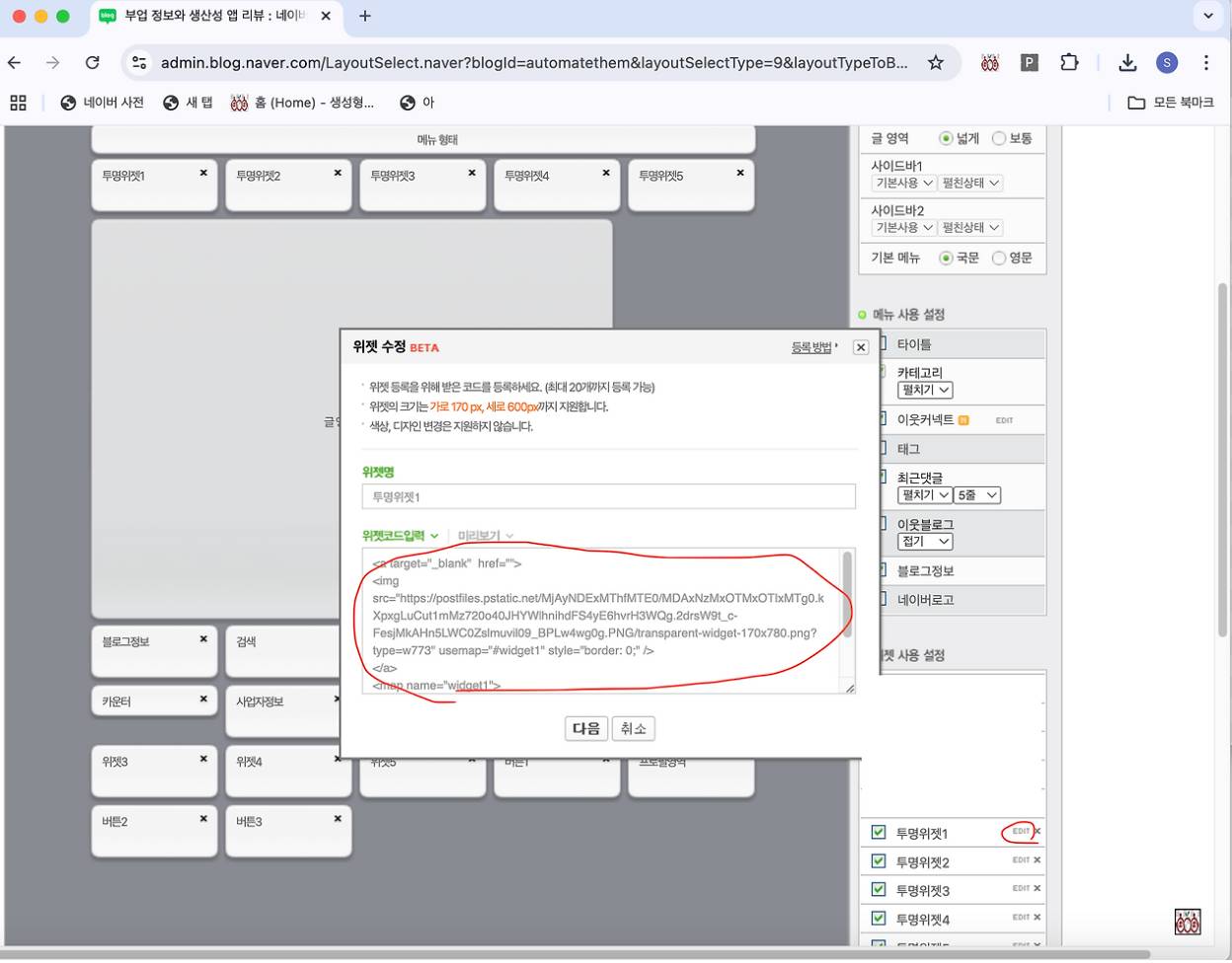 네이버 블로그 최대 위젯 크기 가로 170px 세로 600px 이미지를 비공개 포스트에 올리고 오른 쪽 버튼을 클릭 후 이미지 주소를 복사해 둡니다.