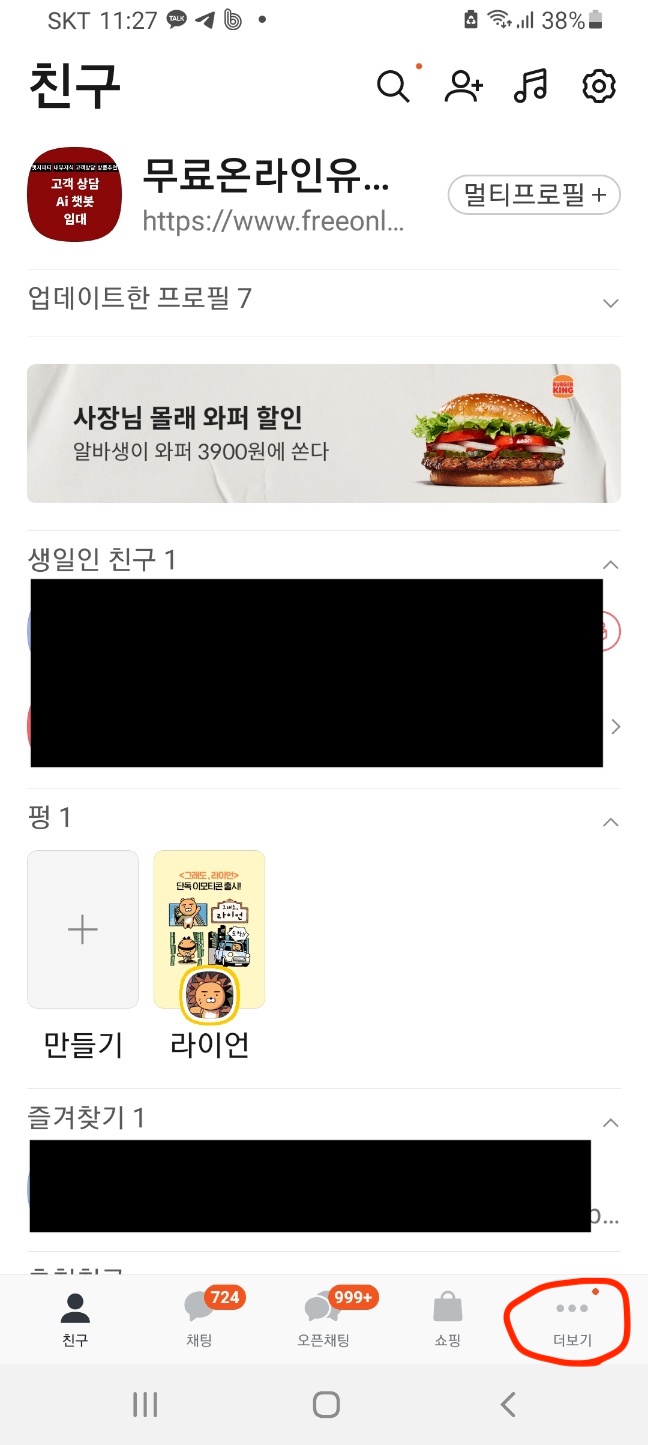 하단 우측 점세개 버튼을 눌러 더보기 메뉴를 누릅니다.